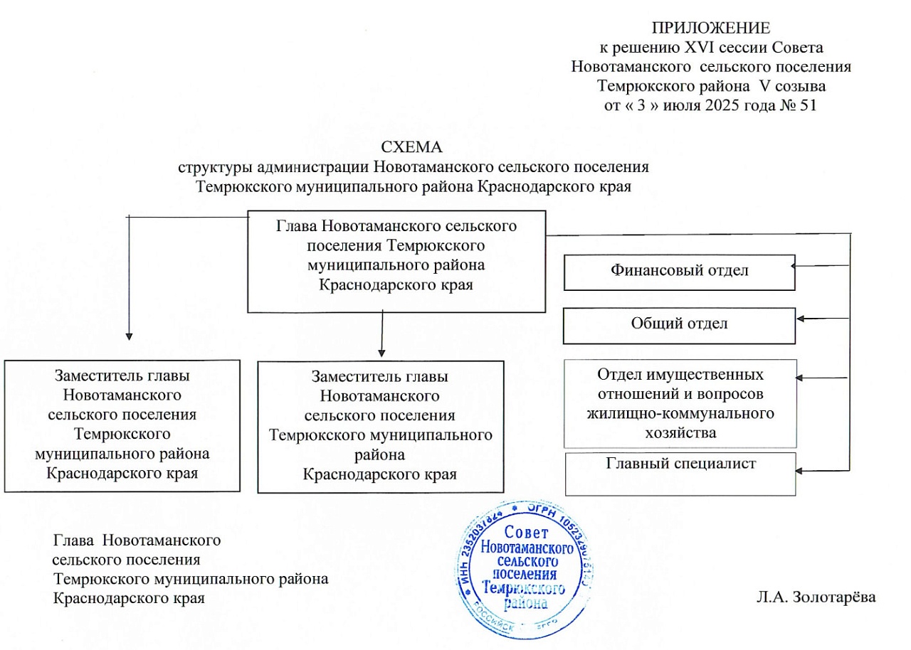Решение № 51 XVI сессия от 3 июля 2025 года Об утверждении схемы структуры администрации Новотаманского сельского поселения Темрюкского муниципального района Краснодарского края